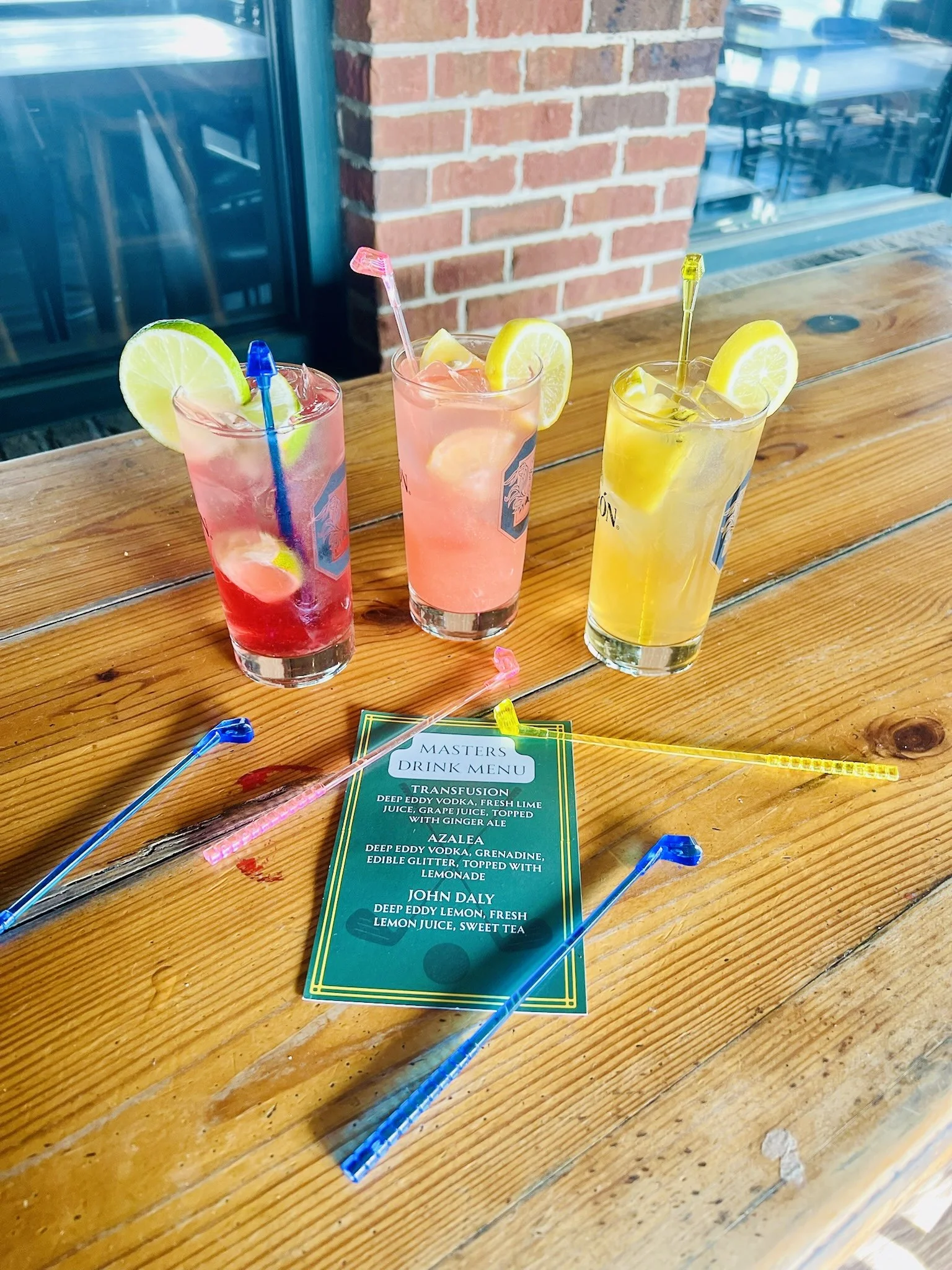 The Azalea: Deep Eddy Vodka, grenadine, and lemonade with a lemon wheel & cherry garnish.