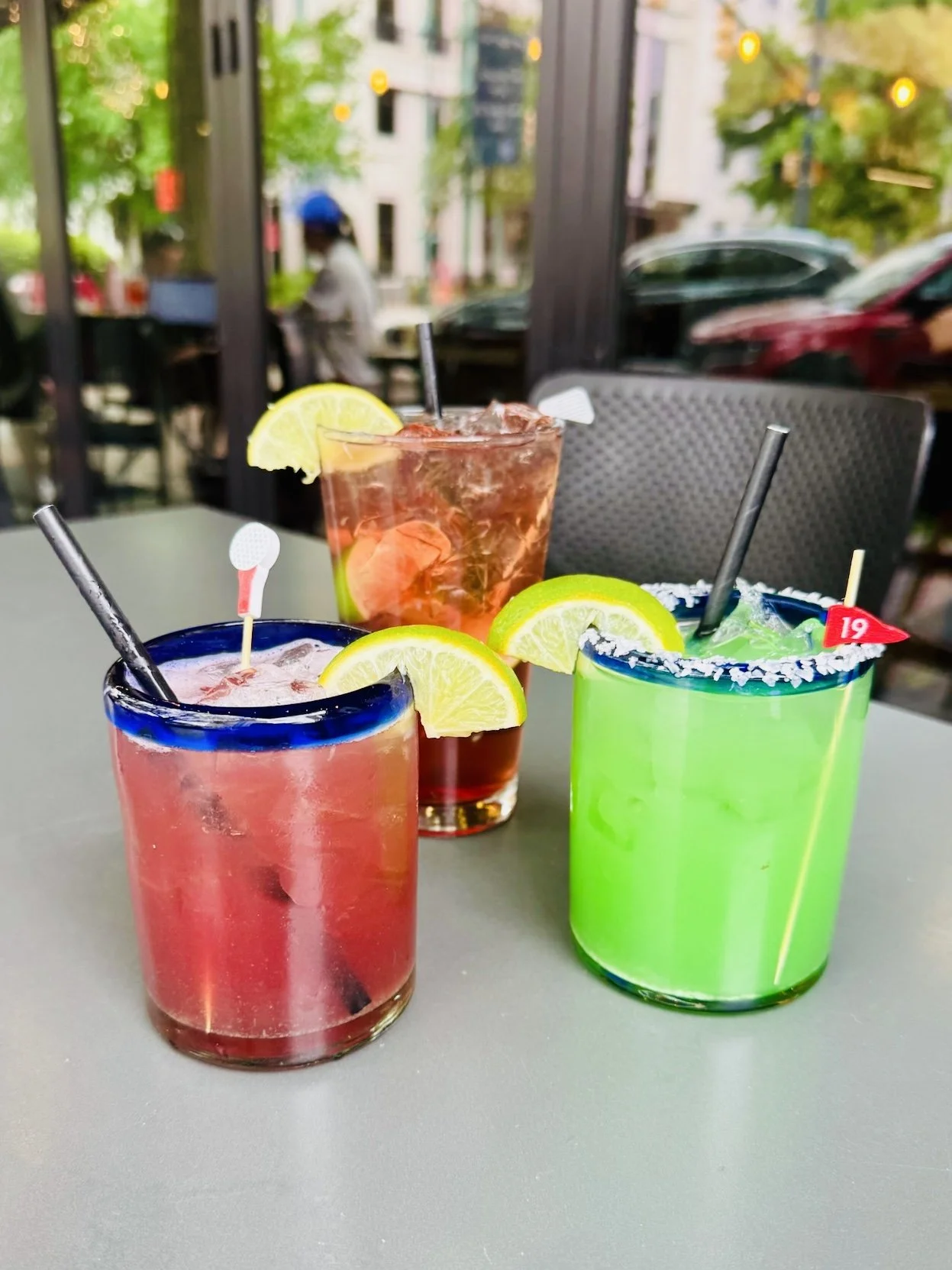 Green Original House Margaritas with a golf-themed garnish!